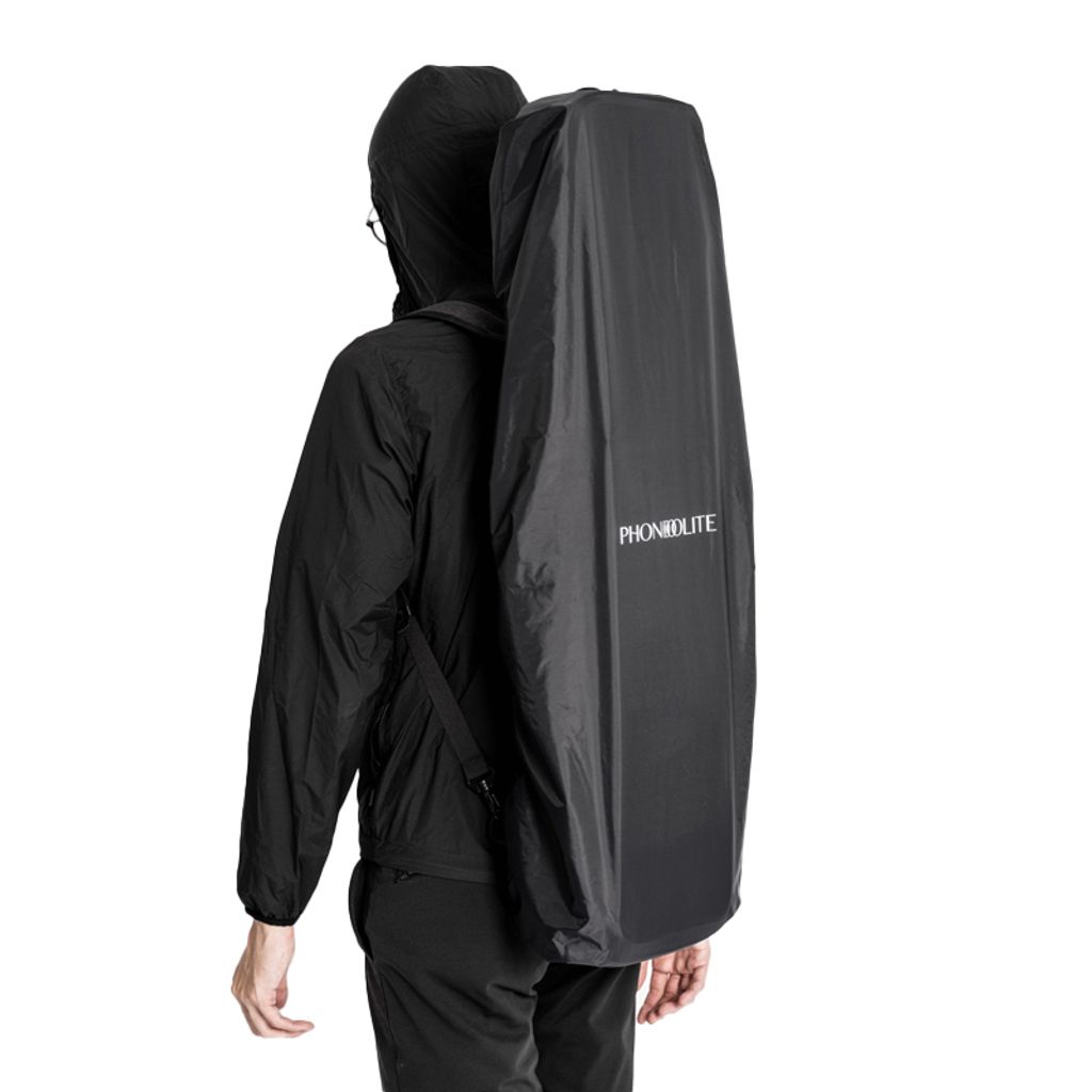 - PHONOLITE專屬的二胡琴包雨罩使用高強度防水布料所製成,一體式的布料使剪裁以及鬆緊帶設計更貼合琴盒,加強了防雨、防水功能,搭配銀色光標誌印刷提升使用安全,PHONOLITE二胡琴包內建雨罩專屬放置夾層,也可以收納於專用袋中,小巧方便。